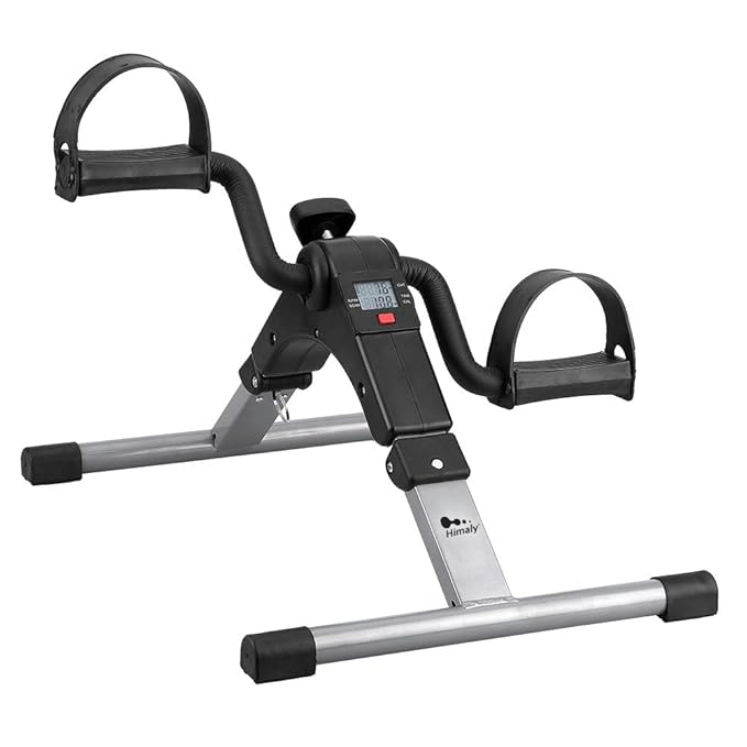 Himaly Folding Mini Pedal Exercise Bike – Portable Home Office Under Desk Stepper – Arm Leg Workout – Adjustable Resistance – LCD Display – Black