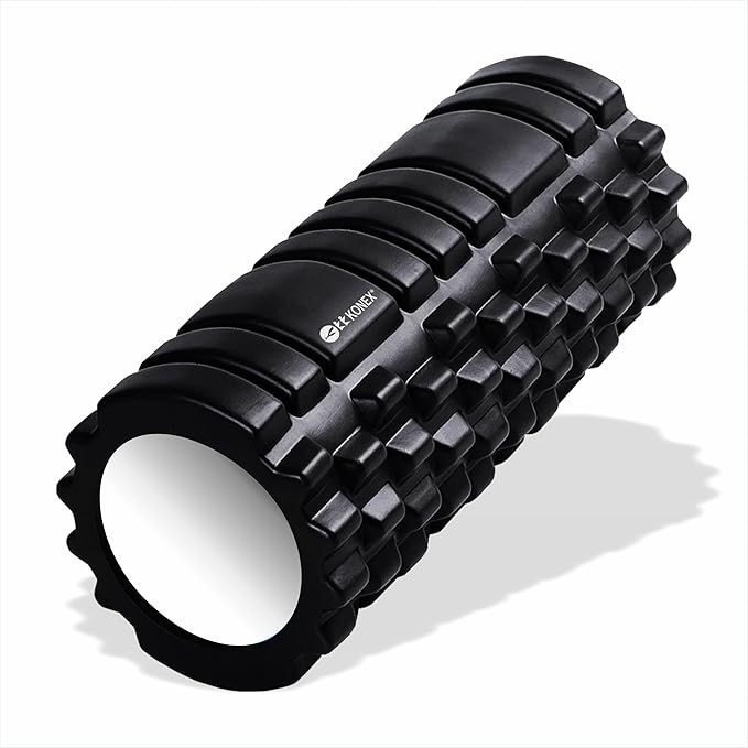 Konex Foam Roller for Men & Women | Deep Tissue Massager for Pain Relief & Muscle Recovery | Ideal for Yoga, Gym, Stretching & Full Body Relaxation – 33 cm (Black)